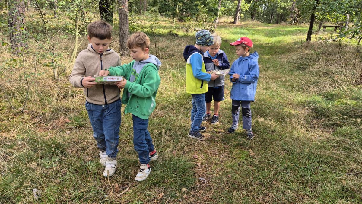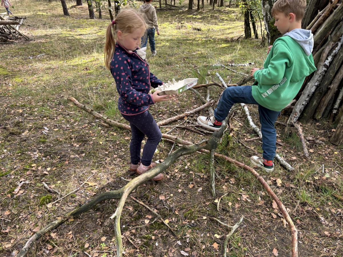 Die Projektarbeit findet häufig im Freien statt, was den Lernprozess bereichert. In den letzten Wochen haben die Kinder beispielsweise Ausflüge in den Wald unternommen, um verschiedene Pflanzen- und Tierarten zu beobachten. Diese Erlebnisse werden oft durch praktische Aktivitäten ergänzt, wie das Sammeln von Materialien aus der Natur, um eigene kleine Projekte zu gestalten, etwa das Bauen von Unterständen oder das Erforschen von Lebensräumen.